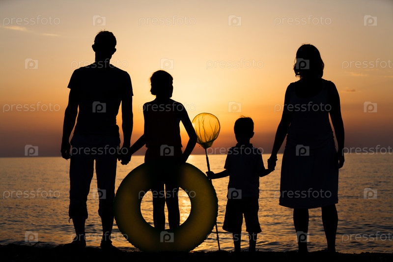 Силуэт семьи на пляже