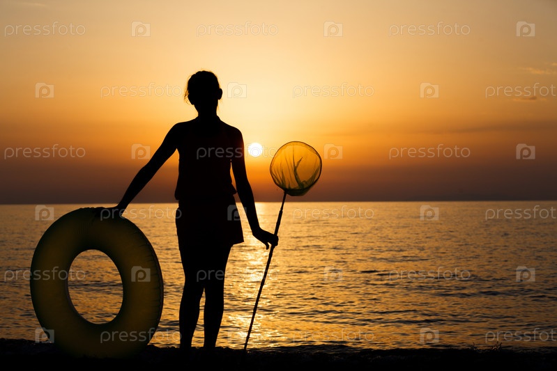 Силуэт девушки на пляже