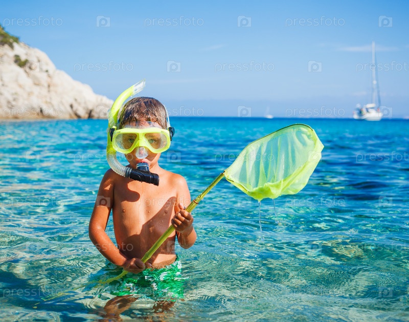 Мальчик играет в море