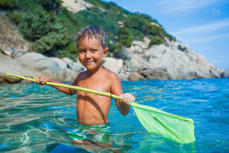 Мальчик играет в море