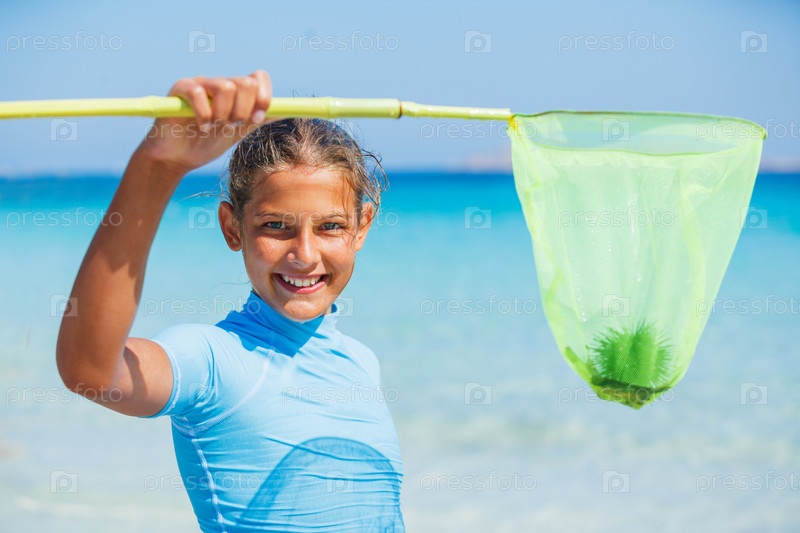Девушка играет в море