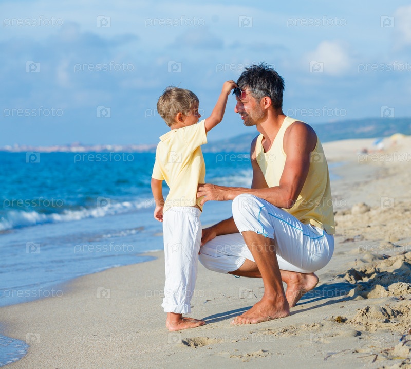 Отец и сын на пляже
