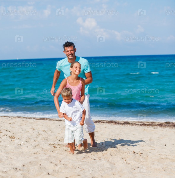 Дети и отец на пляже
