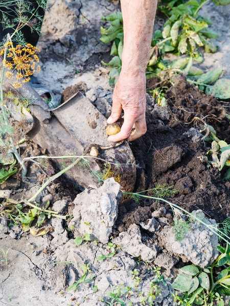 Сбор картофеля в саду