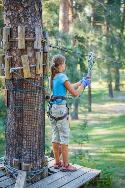 Девочка занимается скалолазанием