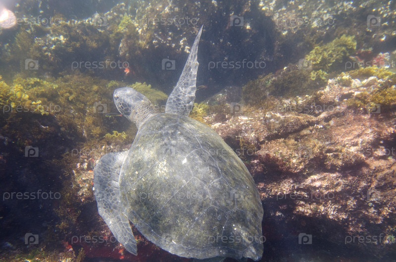Морская черепаха под водой, бухта Тежу, остров Изабела, Галапагосские острова, Эквадор