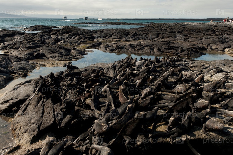 Колонии морских игуан. Остров Фернандина, Галапагосские острова, Эквадор