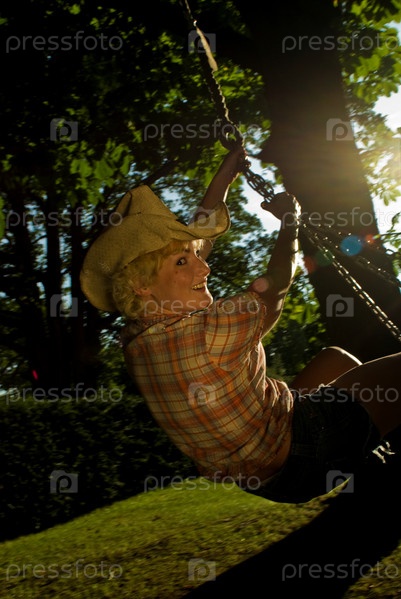 Женщина качается на дерева