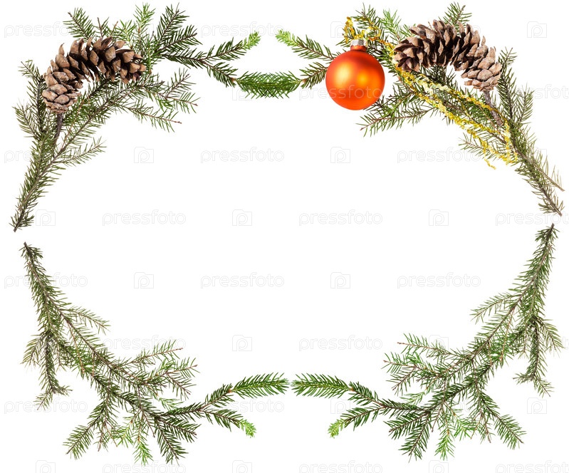 Еловые ветки с шишкой и оранжевым шаром