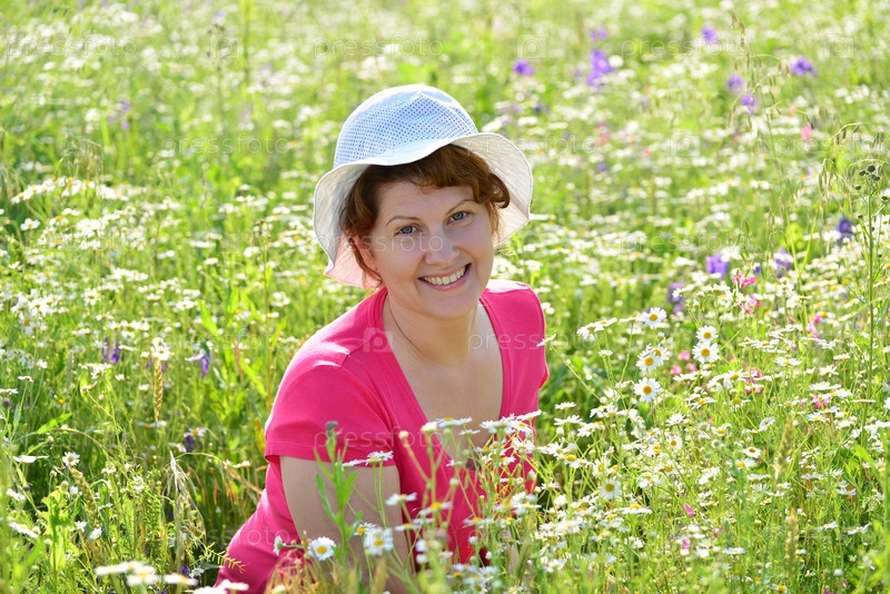 Женщина на лугу с ромашками
