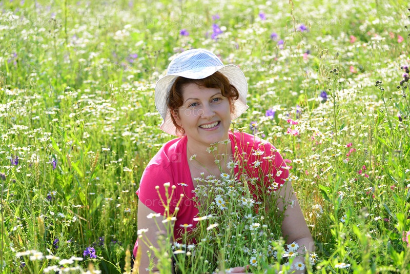 Женщина на лугу с ромашками