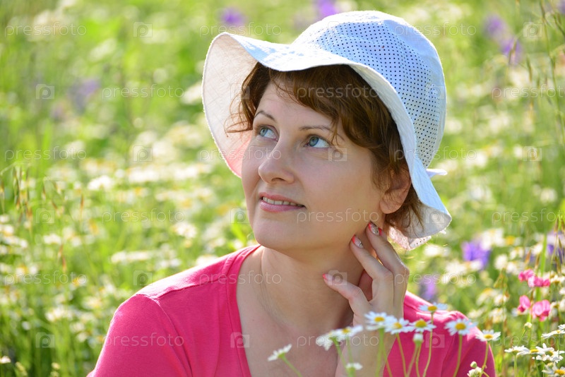 Женщина на лугу с ромашками