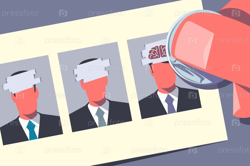 Лотереи. Ручно с помощью монеты чесать карты с изображениями кандидатов. Концепция управления человеческими ресурсами. Ретро стиль иллюстрации