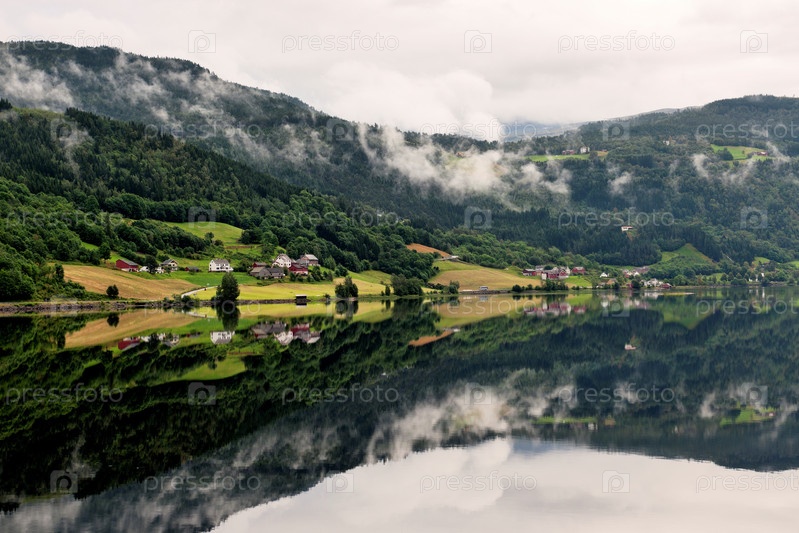 Отражение гор в озере, Гранвин, Хордаланн, Норвегия
