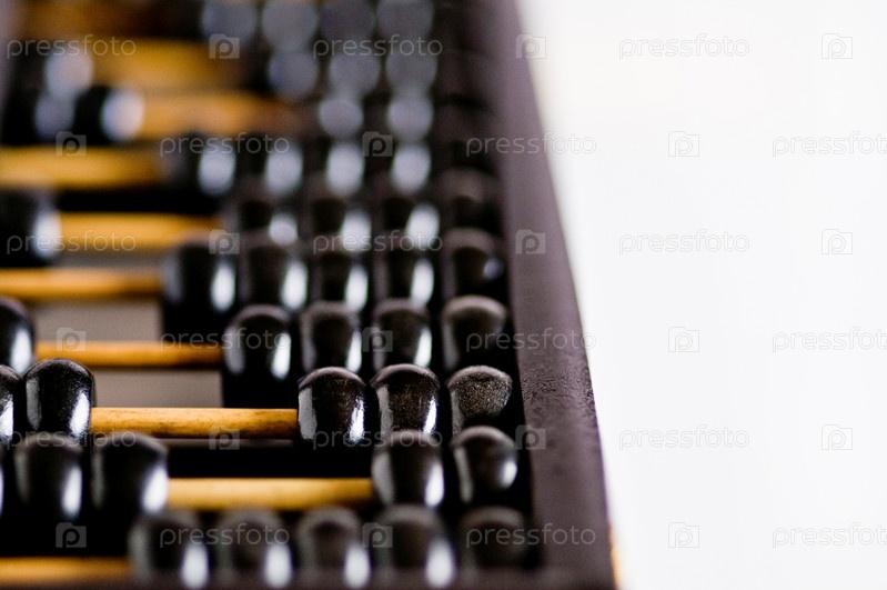 Старые старинные деревянные счеты на белом фоне