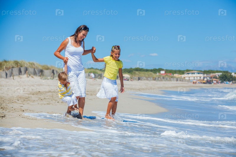Мать с детьми на пляже