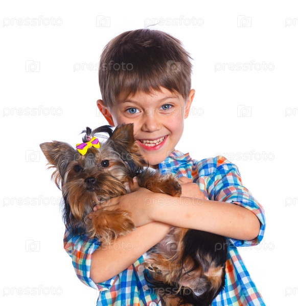 Мальчик и йоркширский терьер