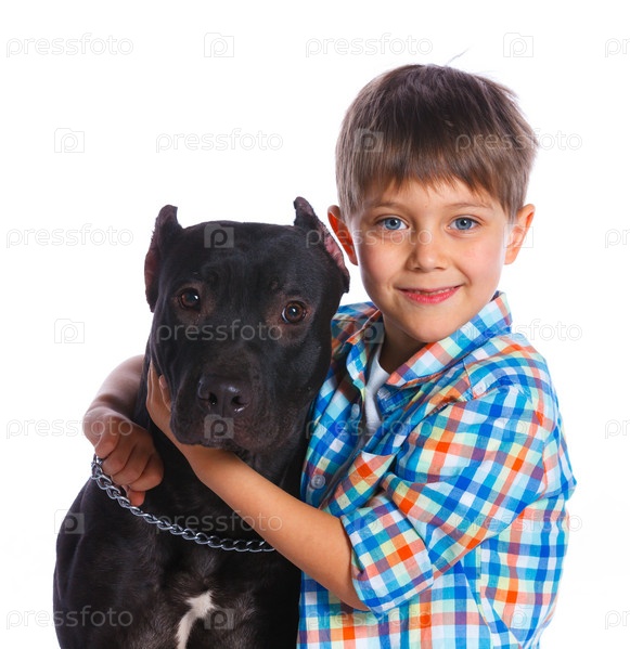 Мальчик с питбультерьер