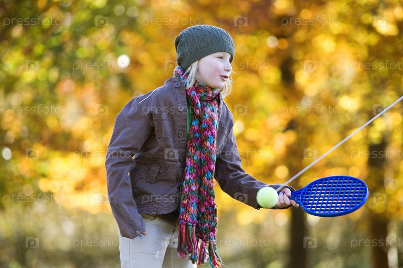 Девушка играть весло шар