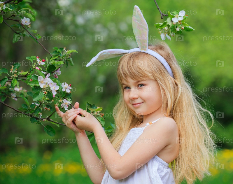 Маленькая девочка носит уши кролика