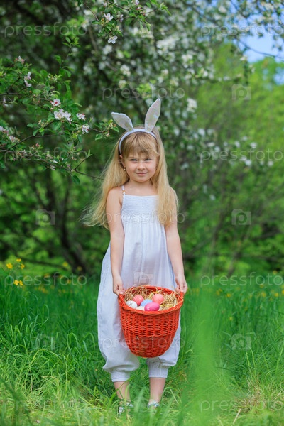 Маленькая девочка носит уши кролика