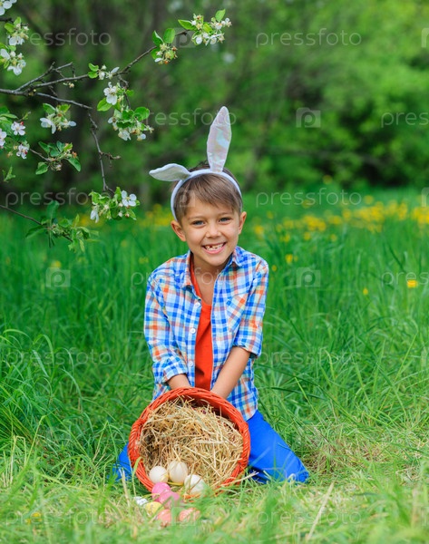 Маленький мальчик носит уши кролика