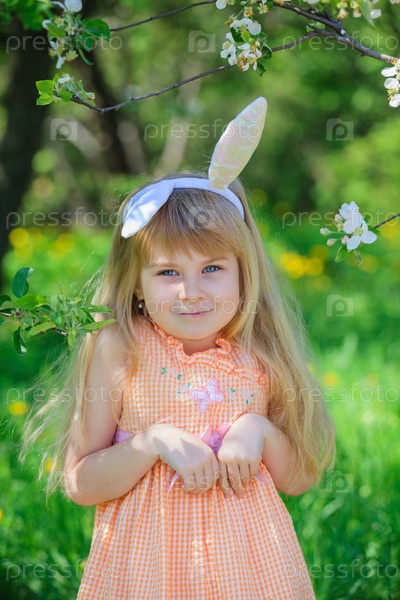 Маленькая девочка носит уши кролика