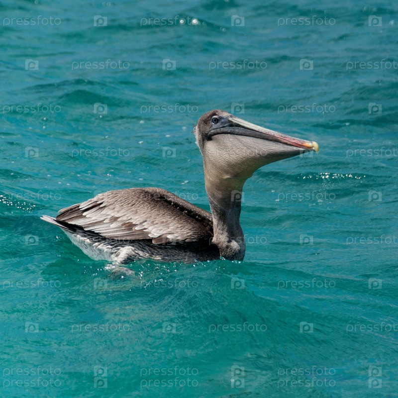 Коричневый пеликан (Pelecanus Западная) плавание, Остров Сан-Кристобаль, Галапагосские острова, Эквадор