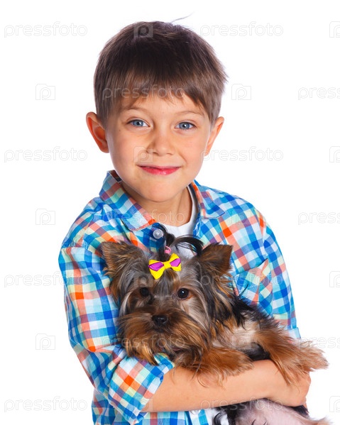 Мальчик с йоркширский терьер