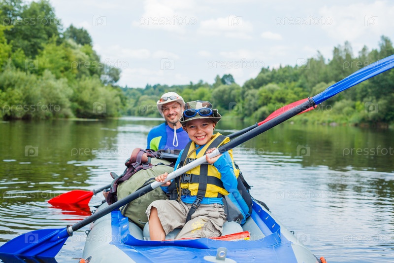 Мальчик с отцом на байдарках