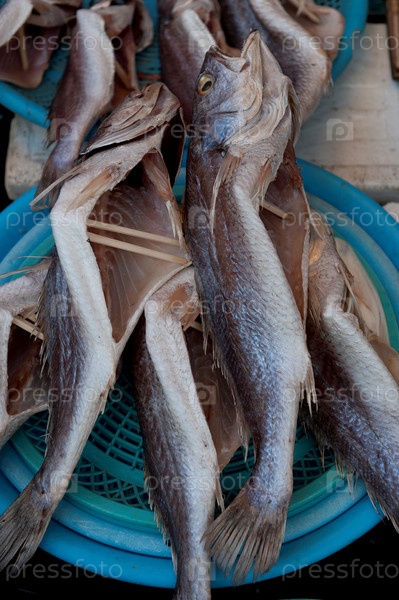 Рыбы, сушка на рынке срыв, Пусан, Йоннам, Южная Корея