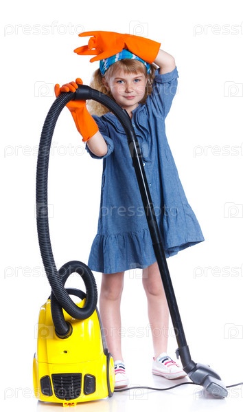 Маленькая девочка с пылесосом