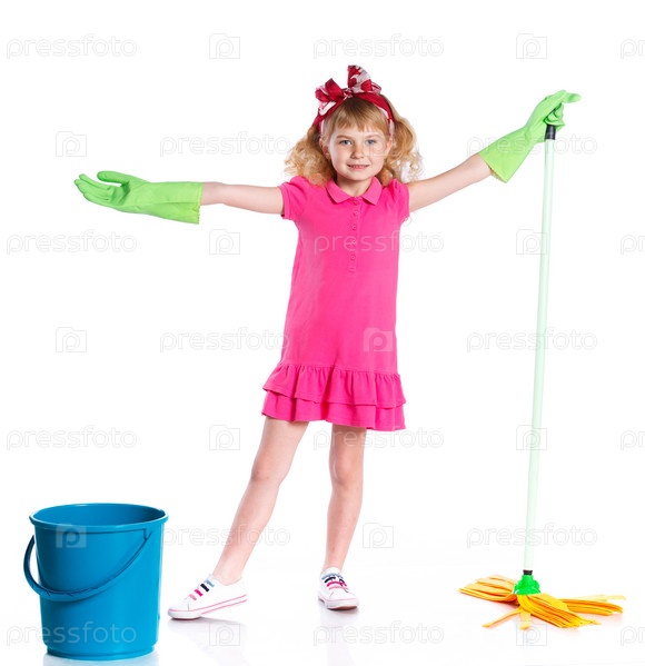 Маленькая девочка со шваброй