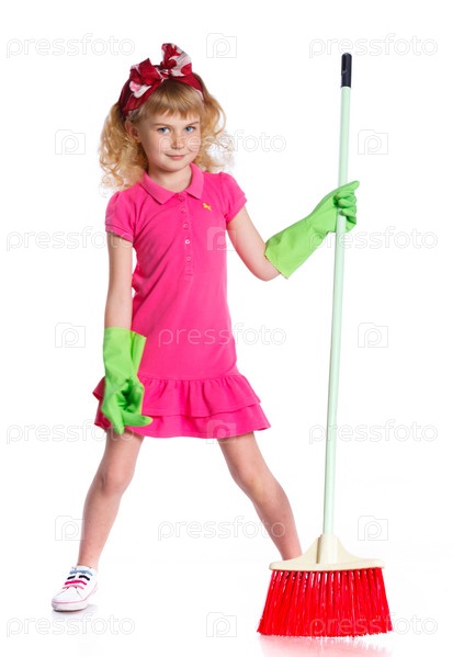 Маленькая девочка со шваброй