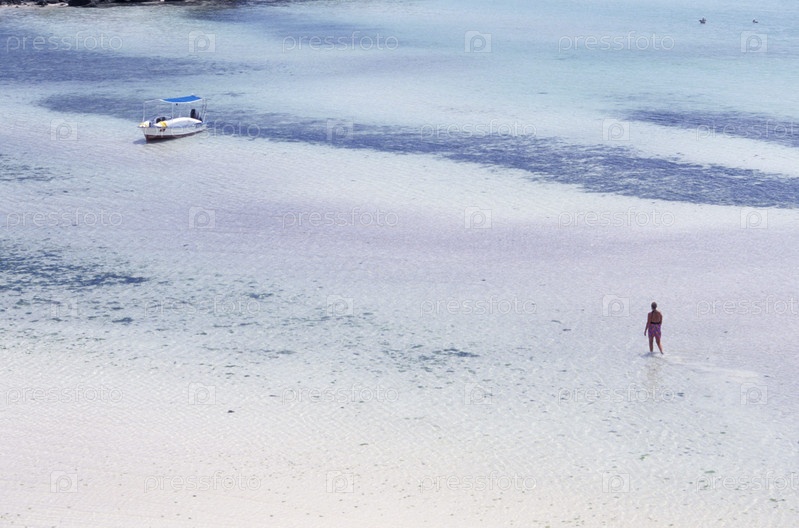 Человек и лодка на мелководье