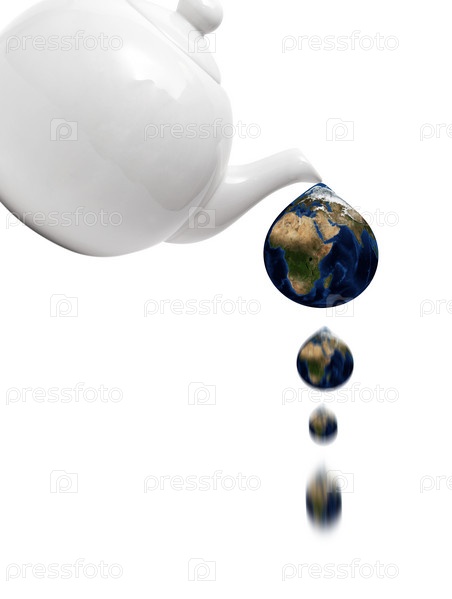 Чайник с каплями воды в форме планеты Земля