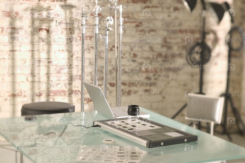 Ноутбук и слайды на столе