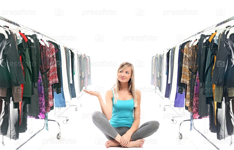 Женщина выбирает одежду
