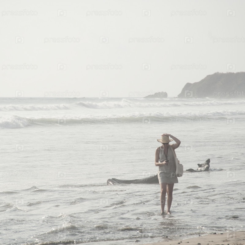 Женщина прогулки вдоль берега моря