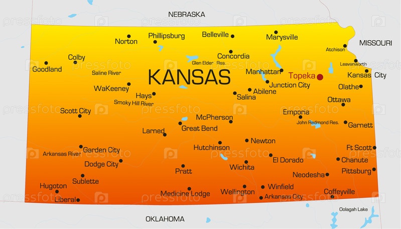 Географическая карта штата Канзас в США