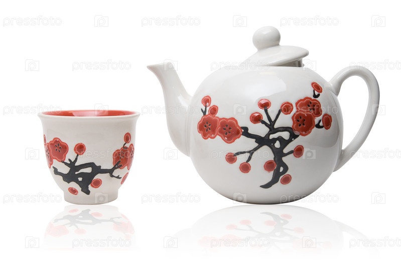 Чайник и чашка на белом фоне