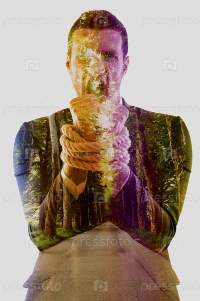 Деловой человек с веревкой