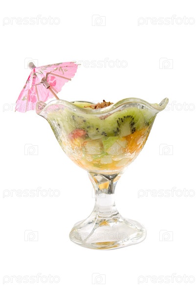 Десерт с киви и орехами на белом фоне