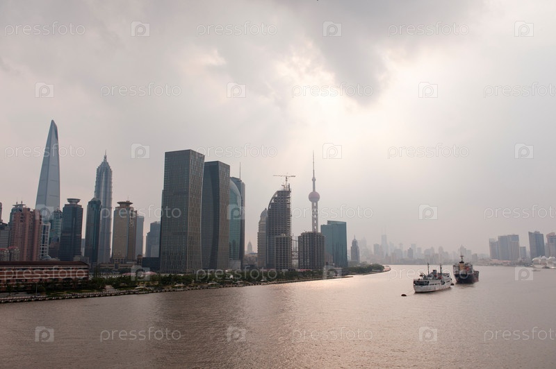 Небоскребы на берегу реки Хуанпу, Пудун, Шанхай, Китай