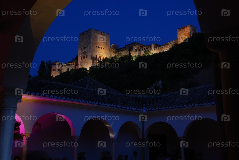 Замок на вершине холма в Альгамбра в Гранаде, Андалусия, Испания,