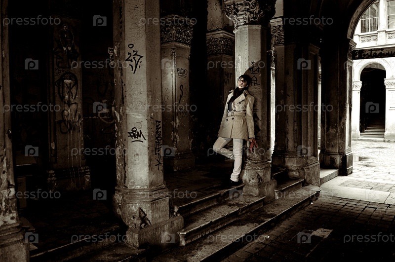 Женщина стоит в тенистом проеме