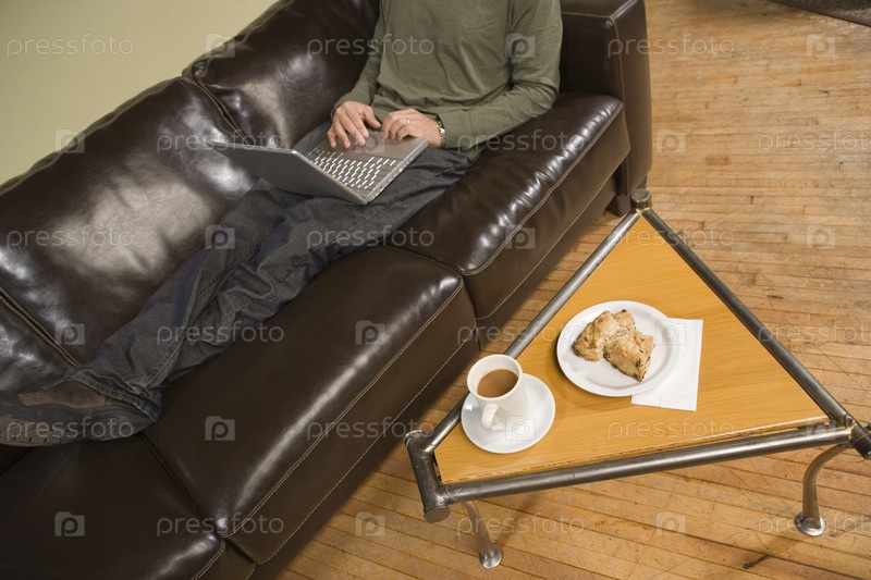 Человек на диване с ноутбуком