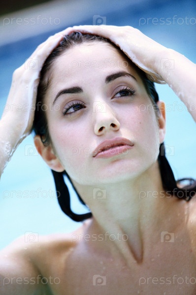 Портрет красивой женщины в бассейне