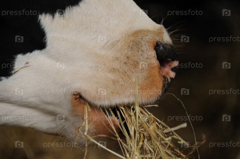 Коровы едят сено