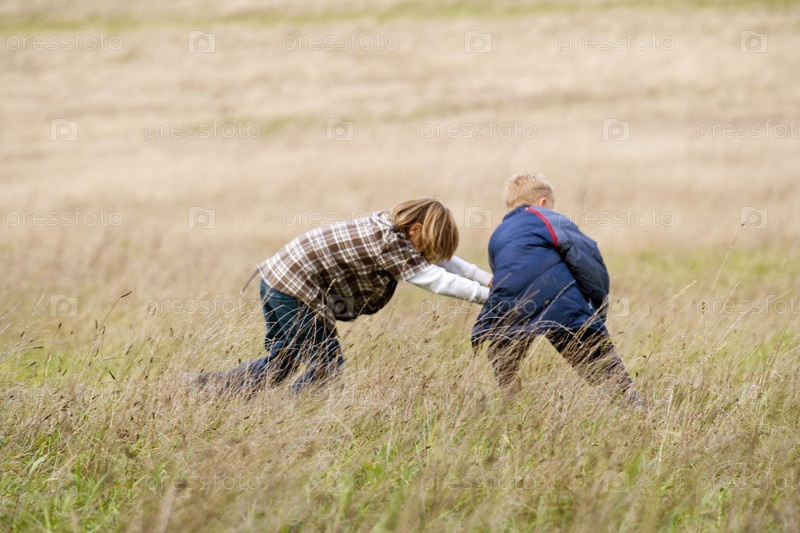 Два мальчика играют в поле